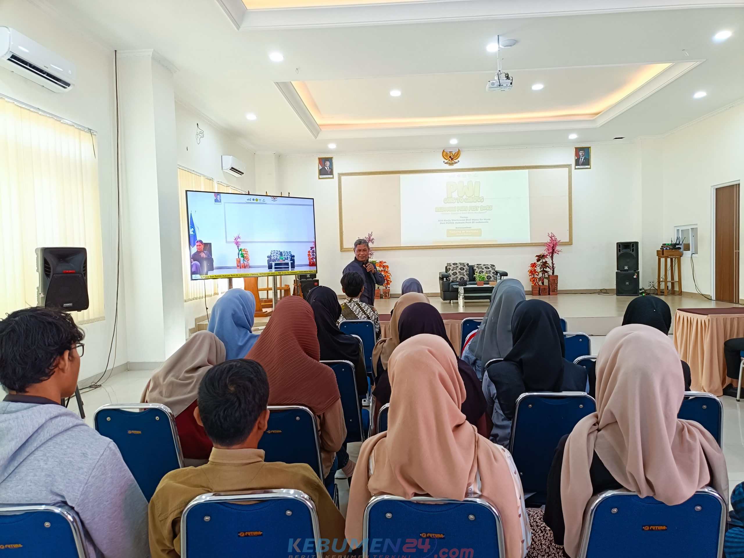 PEJAGOAN, Kebumen24.com – Persatuan Wartawan Indonesia (PWI) Kebumen kembali menggelar program PWI Goes to Campus, kali ini PWI berkolaborasi dengan Universitas Putra Bangsa. Kegiatan berlangsung di aula kampus setempat Selasa, 18 Februari 2025.