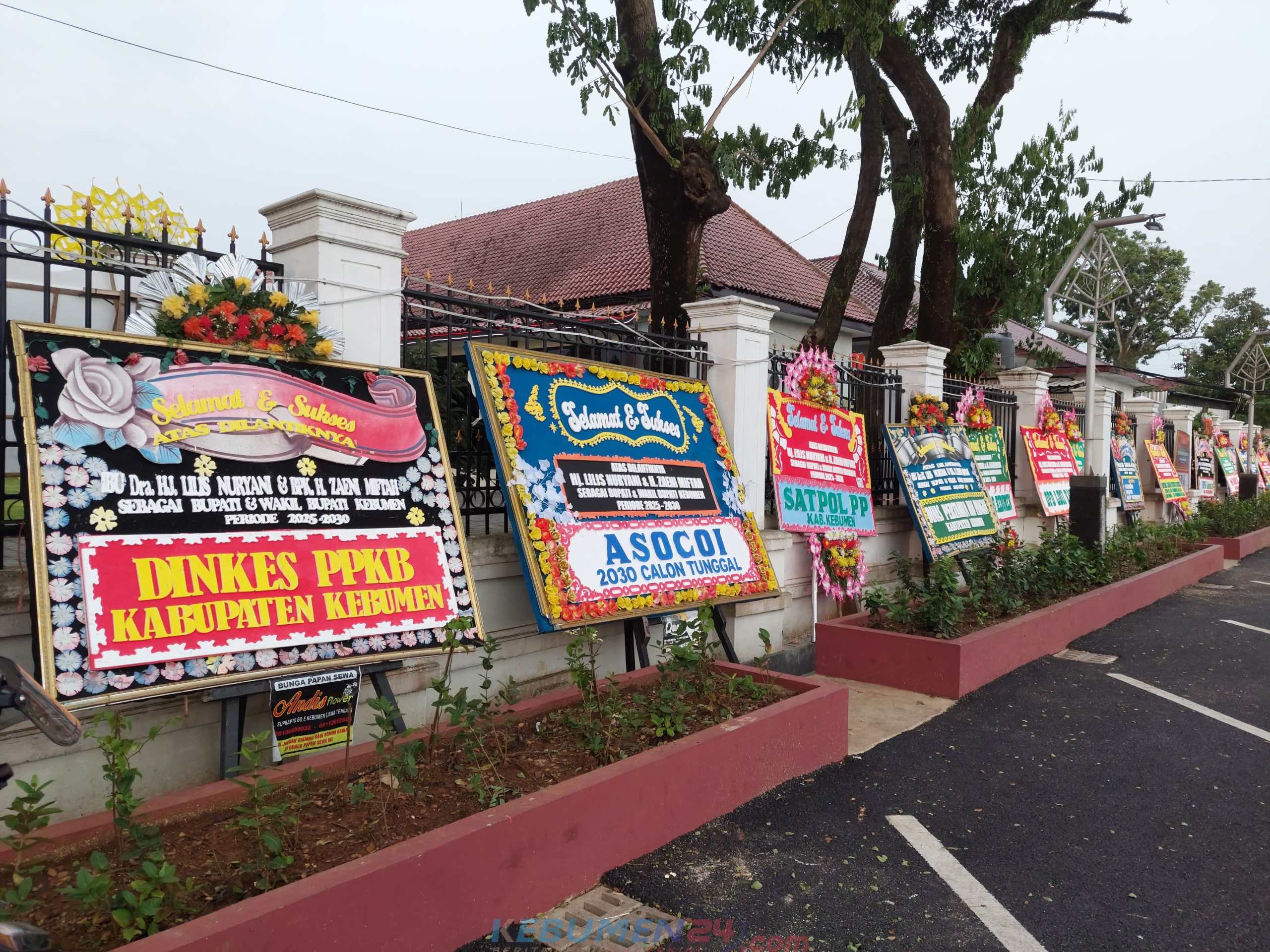 KEBUMEN, Kebumen24.com – Suasana berbeda nampak di sekitar kawasan kantor Pemerintahan Kabupaten Kebumen. Ratusan Karangan bunga bertuliskan ucapan selamat untuk Hj. Lilis Nuryani dan H. Zaini Miftah sebagai bupati dan wakil bupati periode 2025-2030 menghiasi kantor bupati dan sekretaris daerah Kebumen.