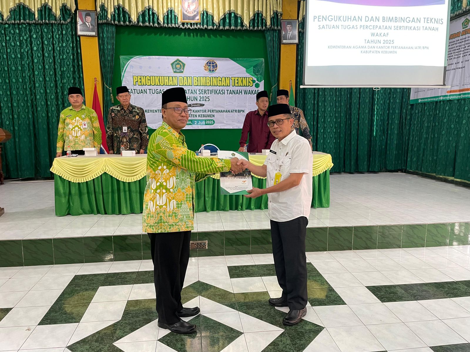 Langkah strategis ini diambil untuk menuntaskan ribuan kasus tanah wakaf yang hingga kini belum bersertifikat di wilayah Kebumen. Pengukuhan Satgas dirangkai dengan Bimbingan Teknis (Bimtek) bagi para anggota, guna memperkuat pemahaman teknis dan hukum terkait sertifikasi tanah wakaf.