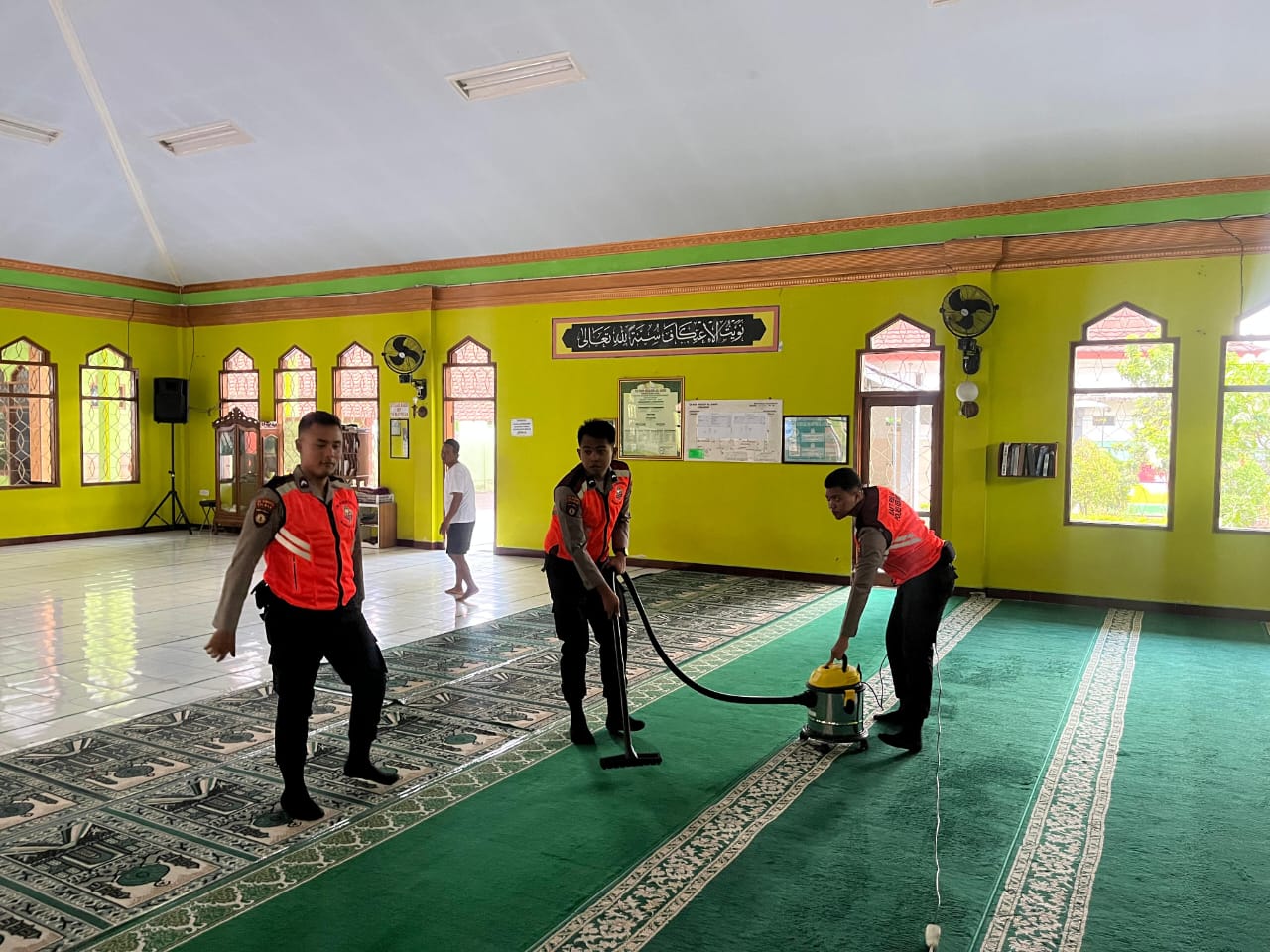 “Kami ingin menunjukkan bahwa Polri tidak hanya hadir menjaga keamanan dan ketertiban, tetapi juga peduli terhadap kenyamanan serta kebersihan tempat ibadah,” ujar AKBP Eka Baasith Syamsuri.