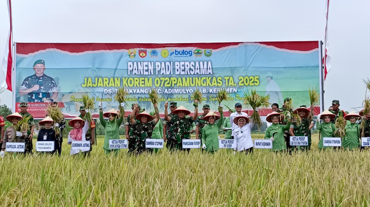 ADIMULYO, Kebumen24.com – Hamparan padi menguning di Desa Tepakyang, Kecamatan Adimulyo, menjadi saksi kegembiraan ratusan petani saat Panen Raya Padi bersama Panglima Kodam IV/Diponegoro Mayjen TNI Achiruddin S.E., M.Han., Rabu (13/8/2025). Dari lahan seluas 186 hektare, para petani berhasil menghasilkan sekitar 1.116 ton gabah kering panen—capaian yang mendapat apresiasi langsung dari Pangdam.