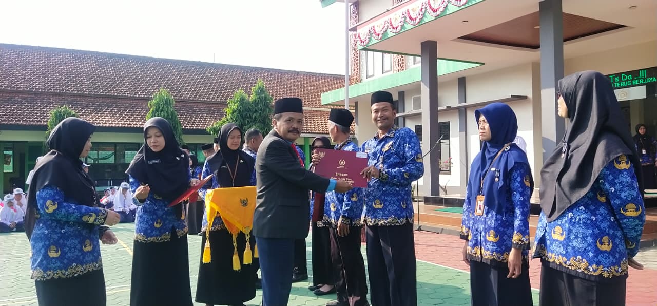 Kepala MTsN 2 Kebumen, Wahyono Hadi Susilo, S.Pd., MP. Mat., menyampaikan apresiasi mendalam kepada para guru penerima penghargaan.