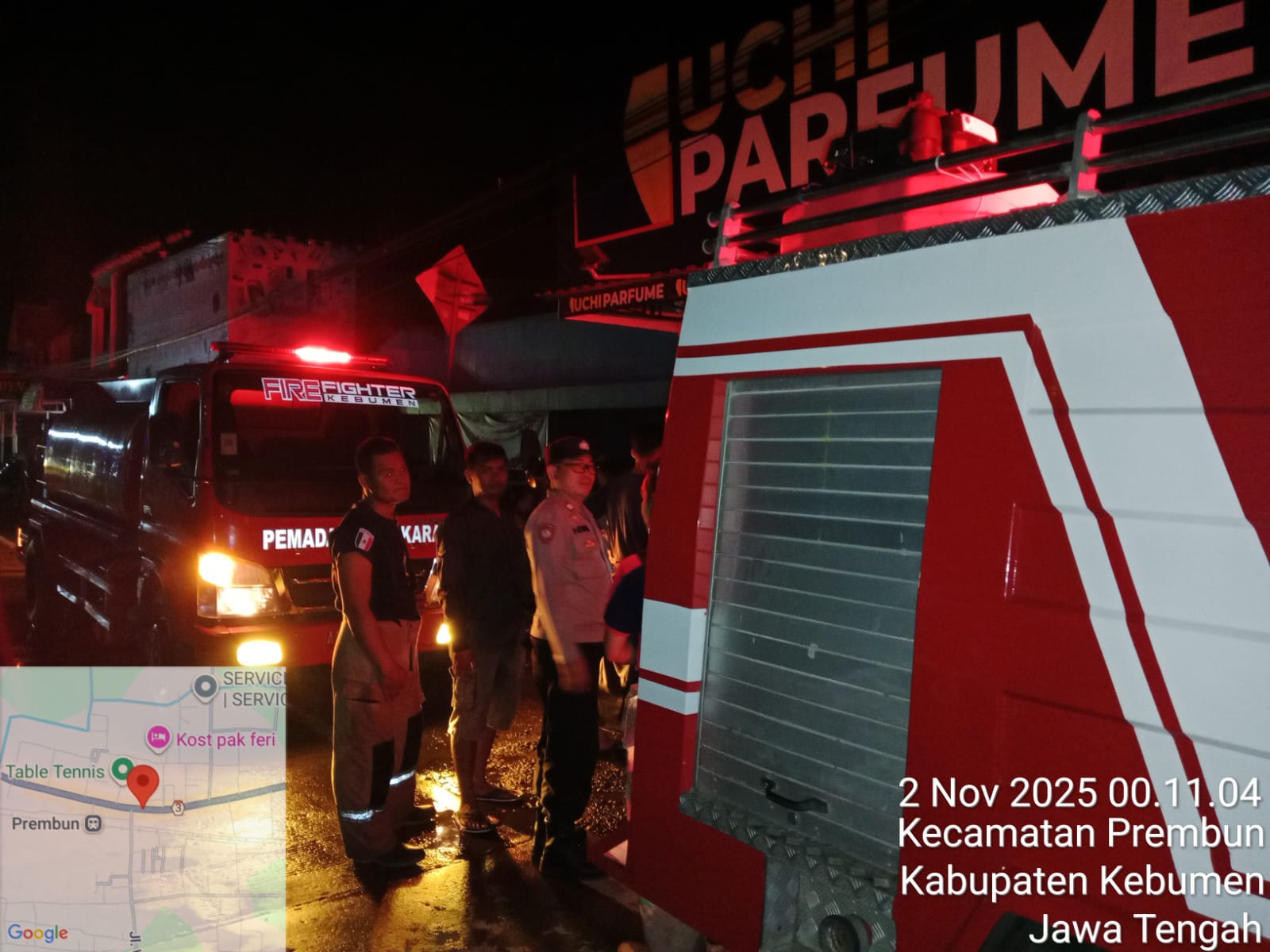 KEBUMEN, Kebumen24.com – Kepolisian Resor (Polres) Kebumen bergerak cepat menangani kebakaran yang melanda toko parfum “Uchi Parfume” di kawasan pertokoan Jalan Slamet Riyadi, Desa Prembun, Kecamatan Prembun, Kabupaten Kebumen, Sabtu malam (1/11/2025).