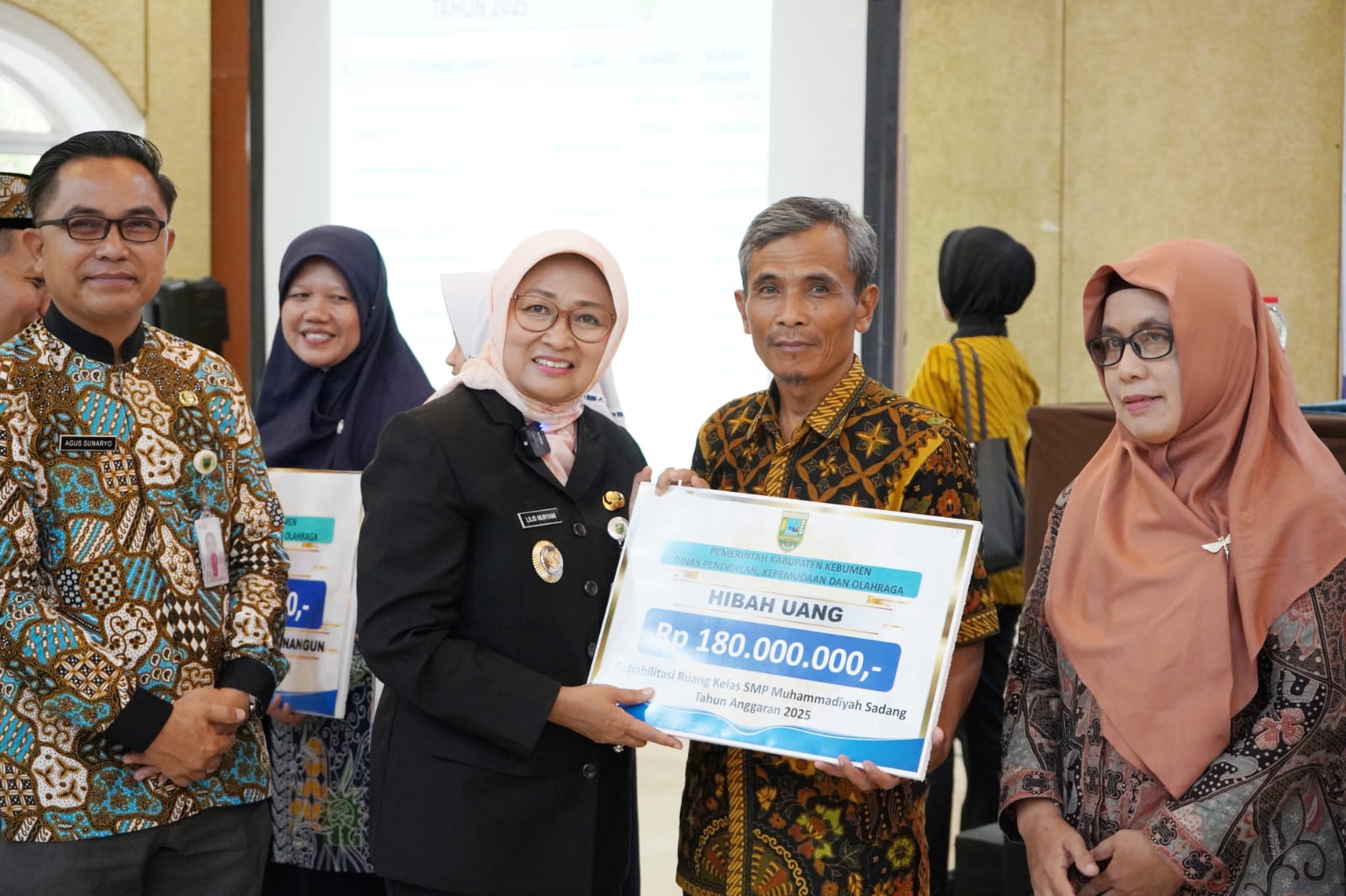Penyerahan secara simbolis digelar di Mexolie Hotel, Kamis (6/11/2025), dipimpin langsung oleh Bupati Kebumen Lilis Nuryani. Acara turut dihadiri Staf Ahli Bupati Bidang Kemasyarakatan dan SDM Mukhsinul Mubarok, Plt. Kepala Disdikpora Agus Sunaryo, Ketua KONI Kebumen Zubair Syamsu, pimpinan OPD, serta ratusan perwakilan lembaga dan penerima manfaat.