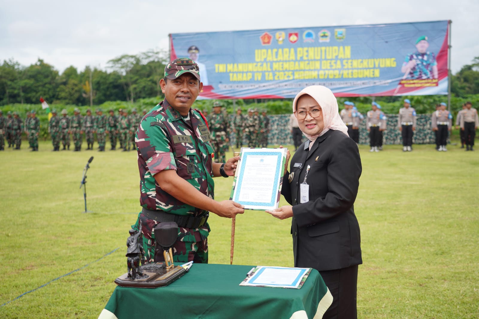 KEBUMEN, Kebumen24.com – Program TNI Manunggal Membangun Desa (TMMD) Sengkuyung Tahap IV Tahun Anggaran 2025 Kodim 0709 Kebumen resmi ditutup dalam upacara yang digelar di Lapangan Desa Ayamputih, Kecamatan Buluspesantren, Kamis (6/11/2025).
