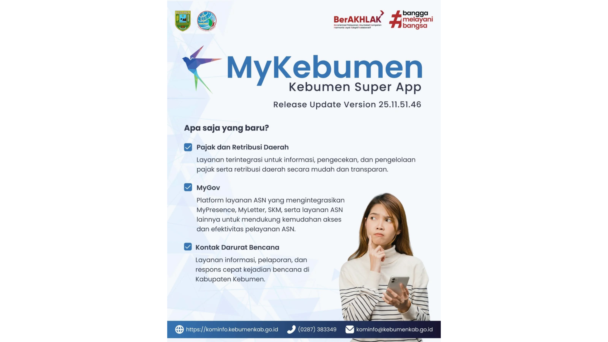 Dengan berbagai pembaruan tersebut, masyarakat dan ASN diimbau untuk segera melakukan update Aplikasi MyKebumen agar dapat menikmati layanan yang semakin mudah, cepat, dan saling terhubung.(K24/*).