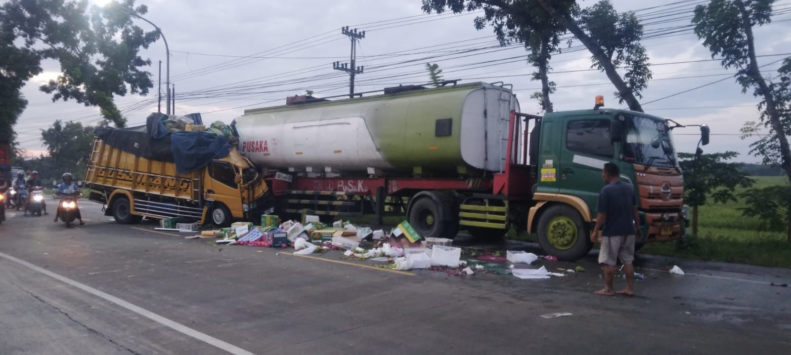 KEBUMEN, Kebumen24.com — Kecelakaan lalu lintas melibatkan dua unit truk terjadi di Jalan Raya Kebumen–Purworejo, tepatnya di selatan Balai Desa Tunjungseto, Kecamatan Kutowinangun, Kabupaten Kebumen, Sabtu (24/1/2026) sekitar pukul 04.30 WIB.