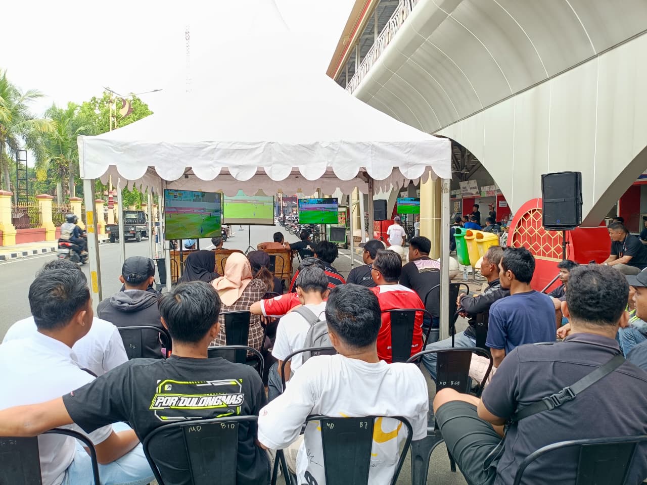 Kegiatan nobar tersebut berlangsung di Kapal Mendoan, Alun-alun Pancasila Kebumen, pada Minggu (25/1/2026). Puluhan hingga ratusan suporter tampak antusias menyaksikan laga leg pertama meski Persak Kebumen bertanding di kandang lawan.