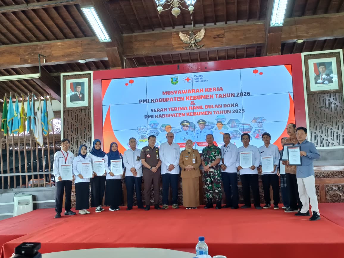 KEBUMEN, Kebumen24.com — Palang Merah Indonesia (PMI) Kabupaten Kebumen menggelar Musyawarah Kerja (Musker) tahun 2026 sekaligus menerima hasil Bulan Dana PMI Kabupaten Kebumen tahun 2025, bertempat di Pendopo Kabumian Kabupaten Kebumen, Senin (26/1/2026). Kegiatan ini menjadi forum evaluasi program kerja serta perumusan arah kebijakan PMI ke depan.