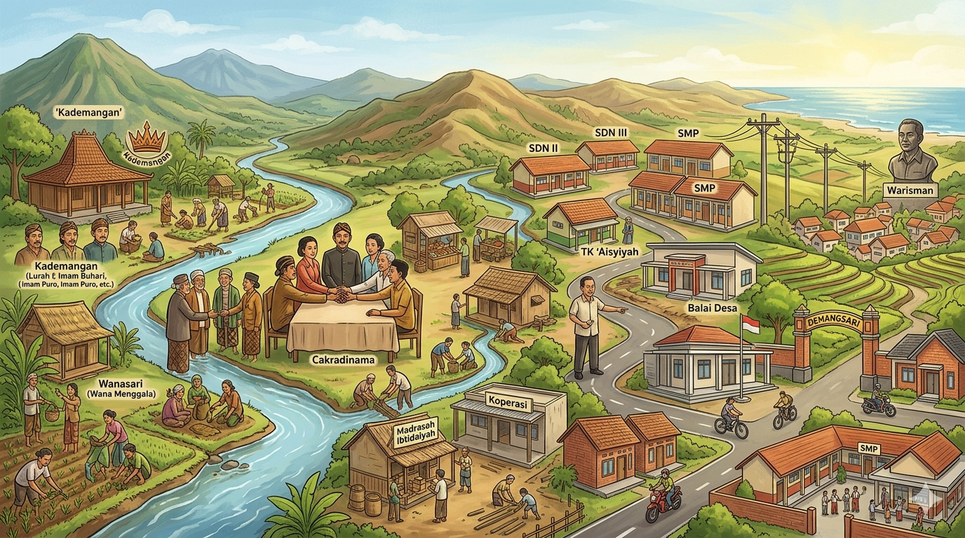 KEBUMEN, Kebumen24.com – Desa Demangsari, yang kini menjadi salah satu desa di Kecamatan Ayah, Kabupaten Kebumen, memiliki sejarah panjang yang dimulai dari penyatuan dua desa, yaitu Kademangan dan Wanasari. Sebelum kemerdekaan, kedua desa tersebut masing-masing dipimpin oleh seorang Lurah.