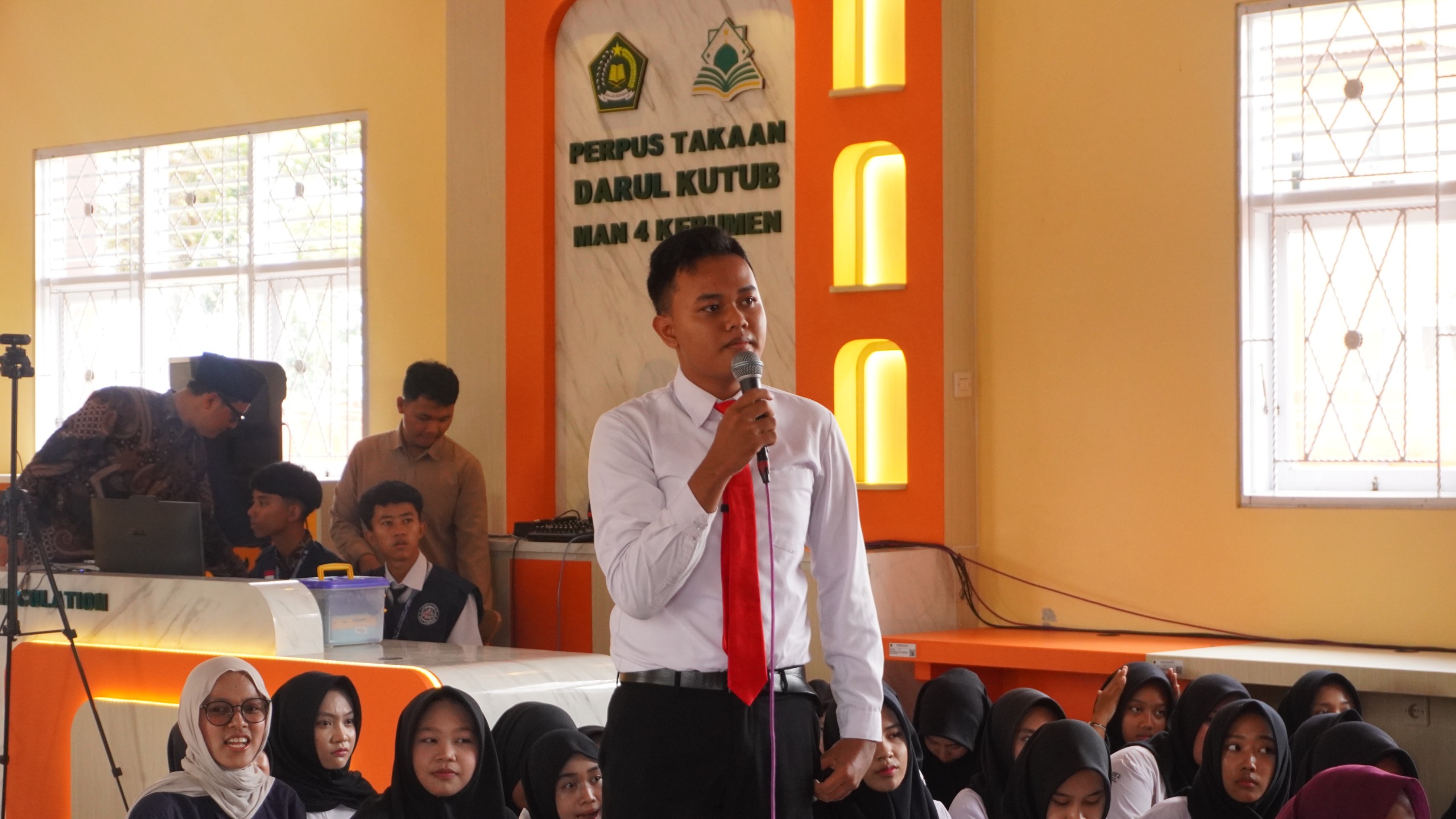 KEBUMEN, Kebumen24.com – Suasana berbeda tampak di Aula Perpustakaan Daarul Kutub MAN 4 Kebumen, Sabtu (18/4/2026). Ruangan yang biasanya digunakan untuk kegiatan literasi itu berubah menjadi ruang interaksi global yang penuh semangat. Siswa-siswi kelas bilingual bersama perwakilan lainnya tampak antusias berlatih dan mempraktikkan kemampuan bahasa Inggris secara langsung.