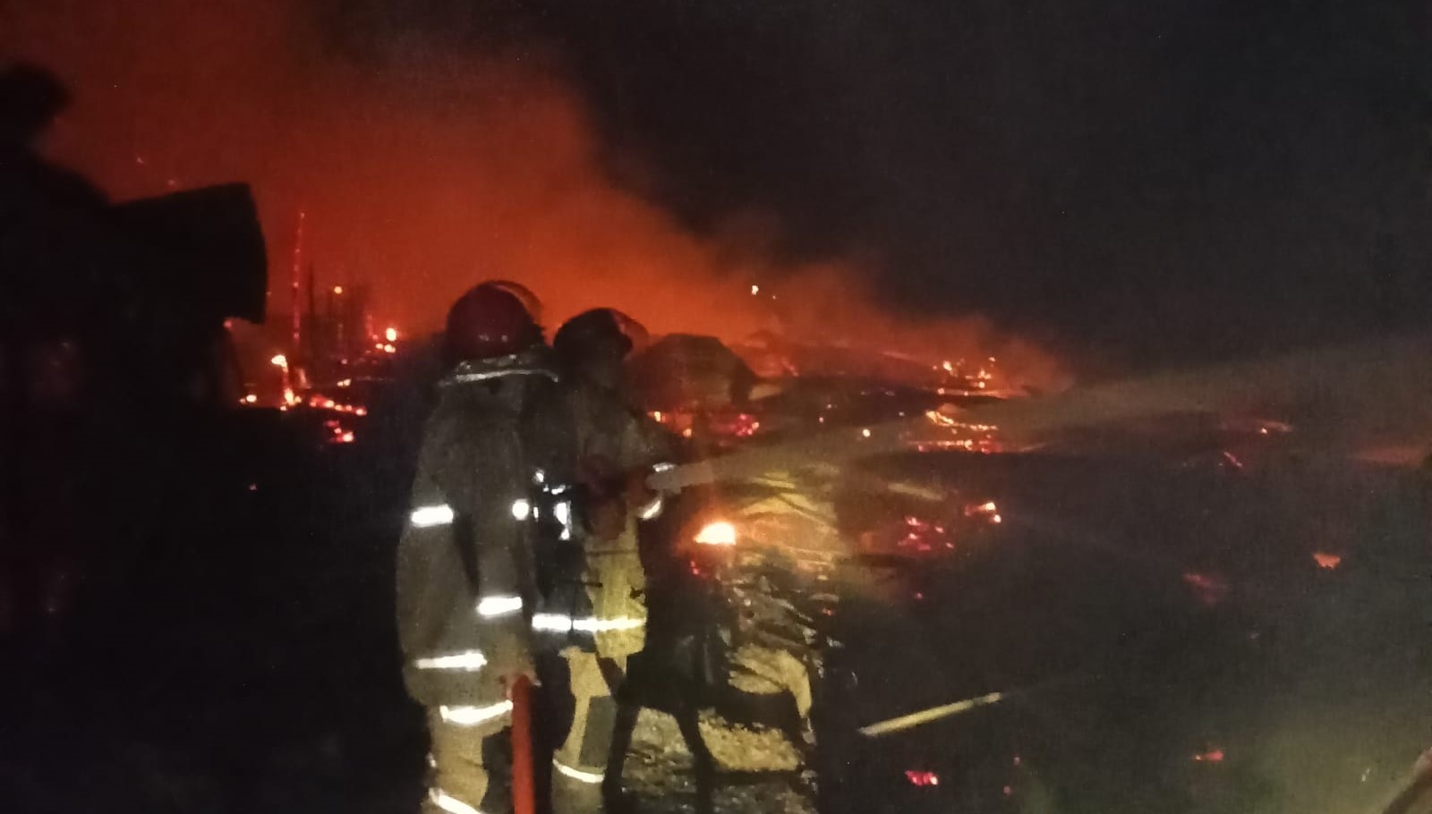Petugas pemadam kebakaran yang tiba di lokasi langsung berjibaku memadamkan api. Setelah upaya intensif, kobaran api akhirnya berhasil dikendalikan menjelang pagi hari.